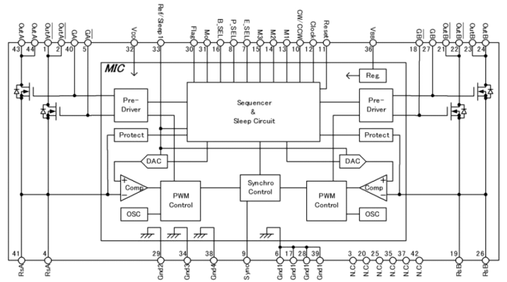 - パッケージ:HSOP44 2相ステッピングモータユニポーラ駆動用IC