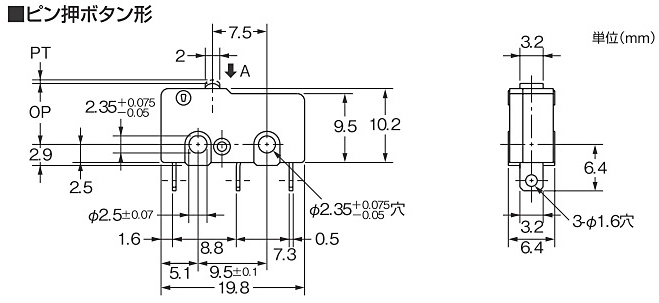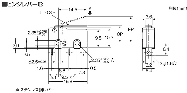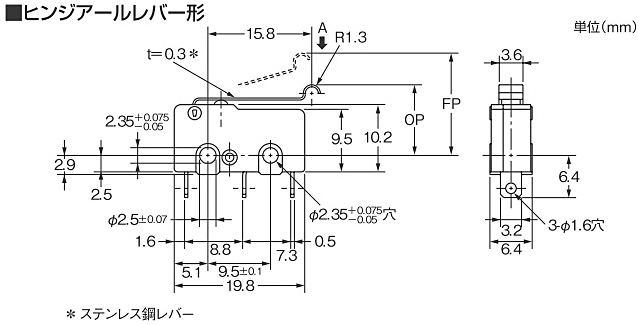 ・端子は、ハンダづけ端子、タブ端子(#110)、プリント基板用端子の3タイプ