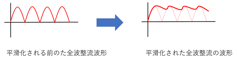 平滑化回路は、コンデンサを追加するだけの回路技術ですが、電源にはこのような技術が利用されています。