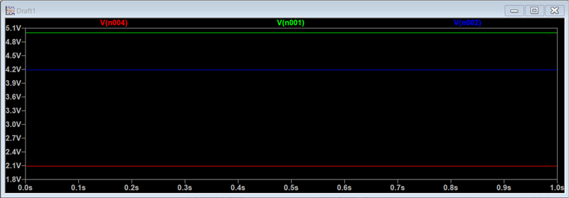 まずは、実機の前にLTspiceでシミュレーションしておきましょう。緑がVinです。赤い線がコンパレータへの基準電圧です。青い線が、Voutになります。実機で試しても、壊れないと判断しました。
