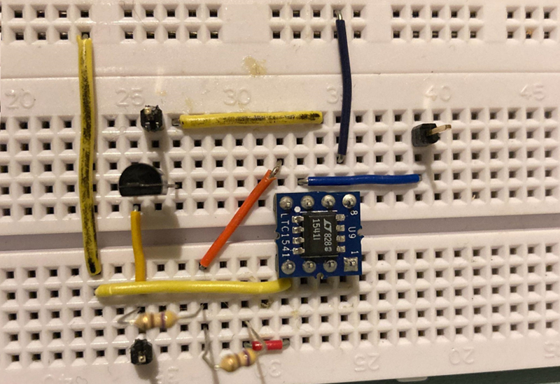 実際に、ブレッドボードで組んだ回路。