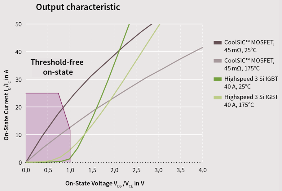 炭化ケイ素(SiC)は、3電子ボルト(eV)の広いバンドギャップ、シリコンに比べはるかに高い熱伝導率を持ちます。 SiCベースのMOSFETは、高周波で動作する高耐圧、高電力アプリケーションに最適です。RDS(ON)などのデバイスパラメータは、シリコンに比べ温度による変化が少ないため、少ない設計マージンで設計することができ、性能を向上させることができます。実績のある高品質な量産体制により、インフィニオンのCoolSiC™ソリューションは、革新的な技術とベンチマークとなる信頼性を兼ね備えています。