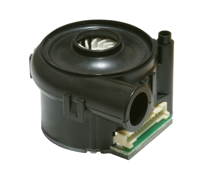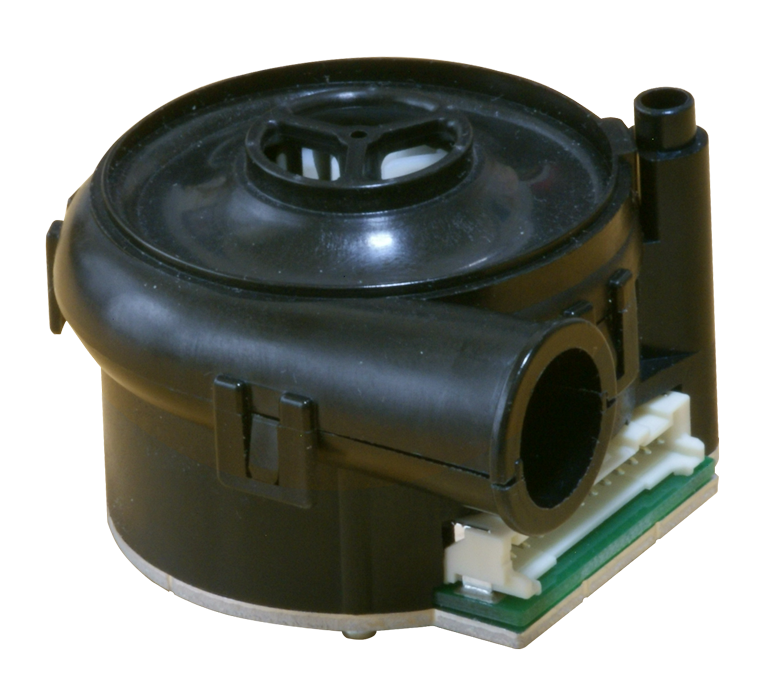 マイクロブロワは、ニデックコンポーネンツが開発した空気動圧軸受技術を駆使した超高速回転と高効率なブレード設計を融合させ、低振動かつ安定したPQ特性を出力する超⼩型でありながらハイパフォーマンスを実現した画期的な製品となっております。
